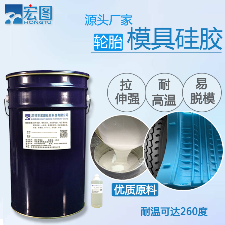 輪胎模具硅膠是一款室溫雙組份硫化硅橡膠,A組分硅膠,B組分固化劑,專業用于輪胎翻模、輪胎鋁膜模具制造及精密產品的模具制作。其分加成型和縮合型,前者硅膠與固化劑的比例為1:1,后者硅膠與固化劑的比例為100:2-3。考慮到生產成本的原因,一般采用縮合型的客戶比較多。