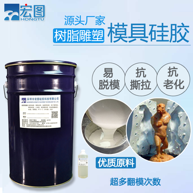 樹脂雕塑模具硅膠有加成型模具硅膠和縮合型模具硅膠兩種,前者屬于食品級硅膠,與固化劑的配比為1:1。后者屬于工業級硅膠,與固化劑的配比為100:2-3。